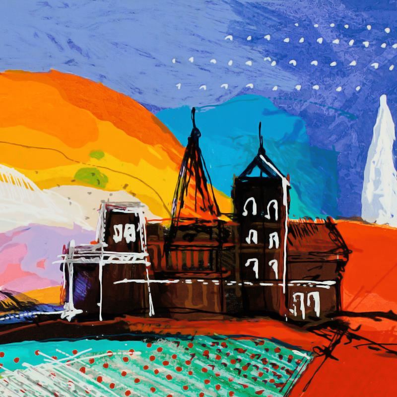 "Tuscany Hill" is a limited edition serigraph on paper by Calman Shemi, numbered and hand signed by the artist. Includes Letter of Authenticity. Measures approx. 12" x 9.5" (image).