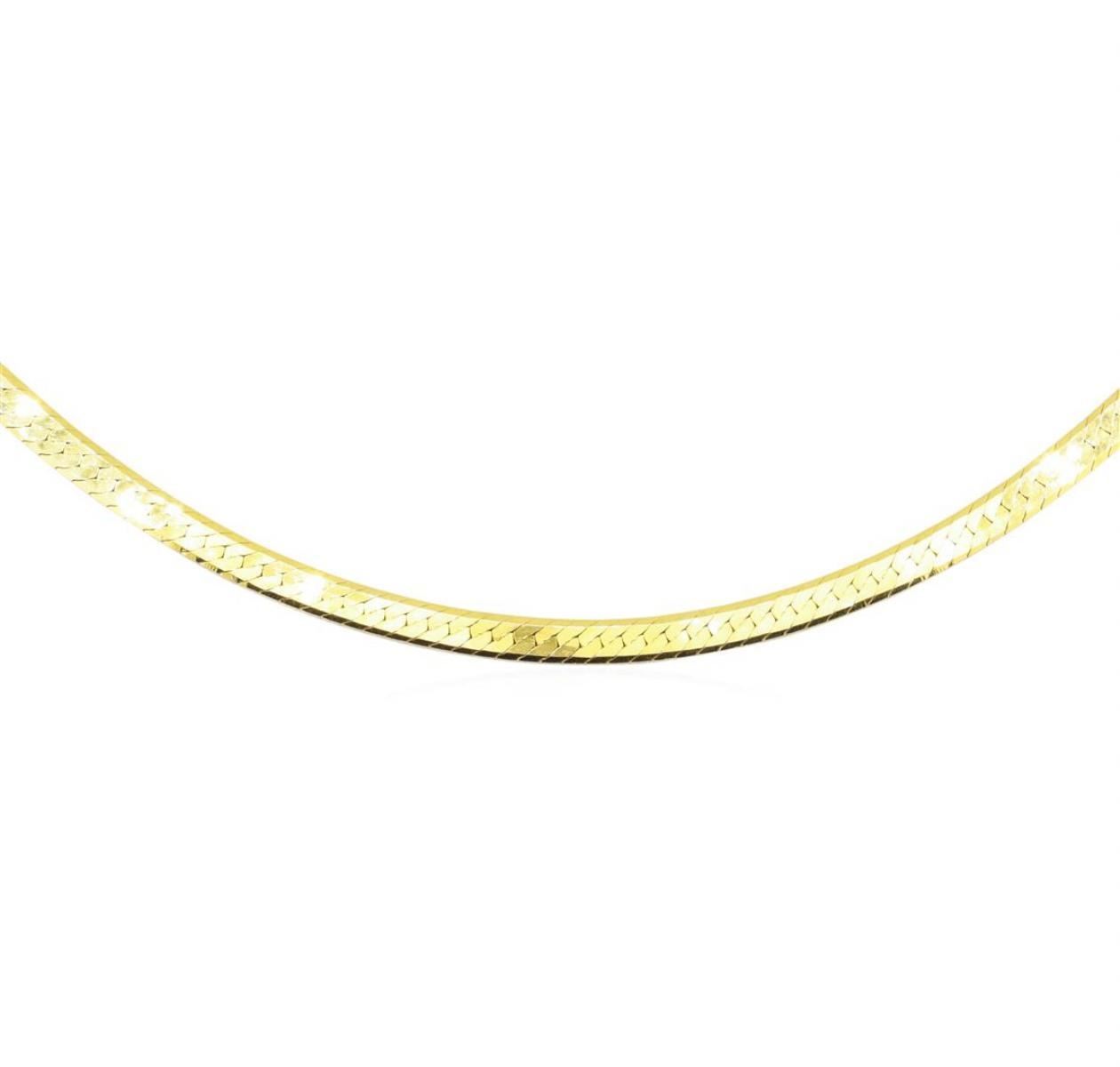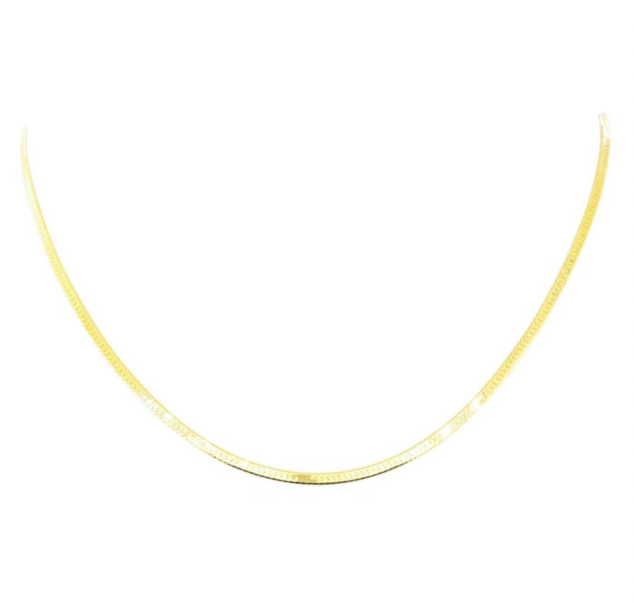 One herringbone chain measuring twenty inches in length and 3mm in width featuring: 14KT yellow gold weighing 6.3 grams.