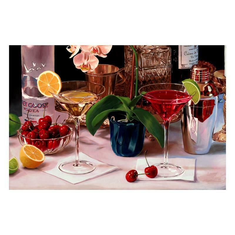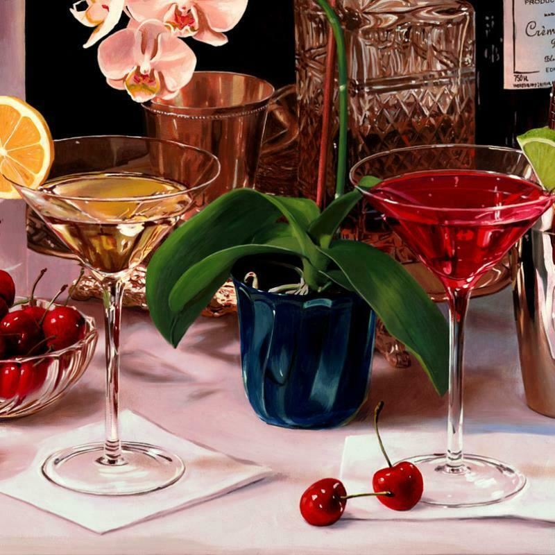 "Two Cherries" is a numbered limited edition giclee on canvas by Nobu Hairara. It comes bearing the artist's authorized signature and with a Certificate of Authenticity. Measures approximately 16"x24" (image).