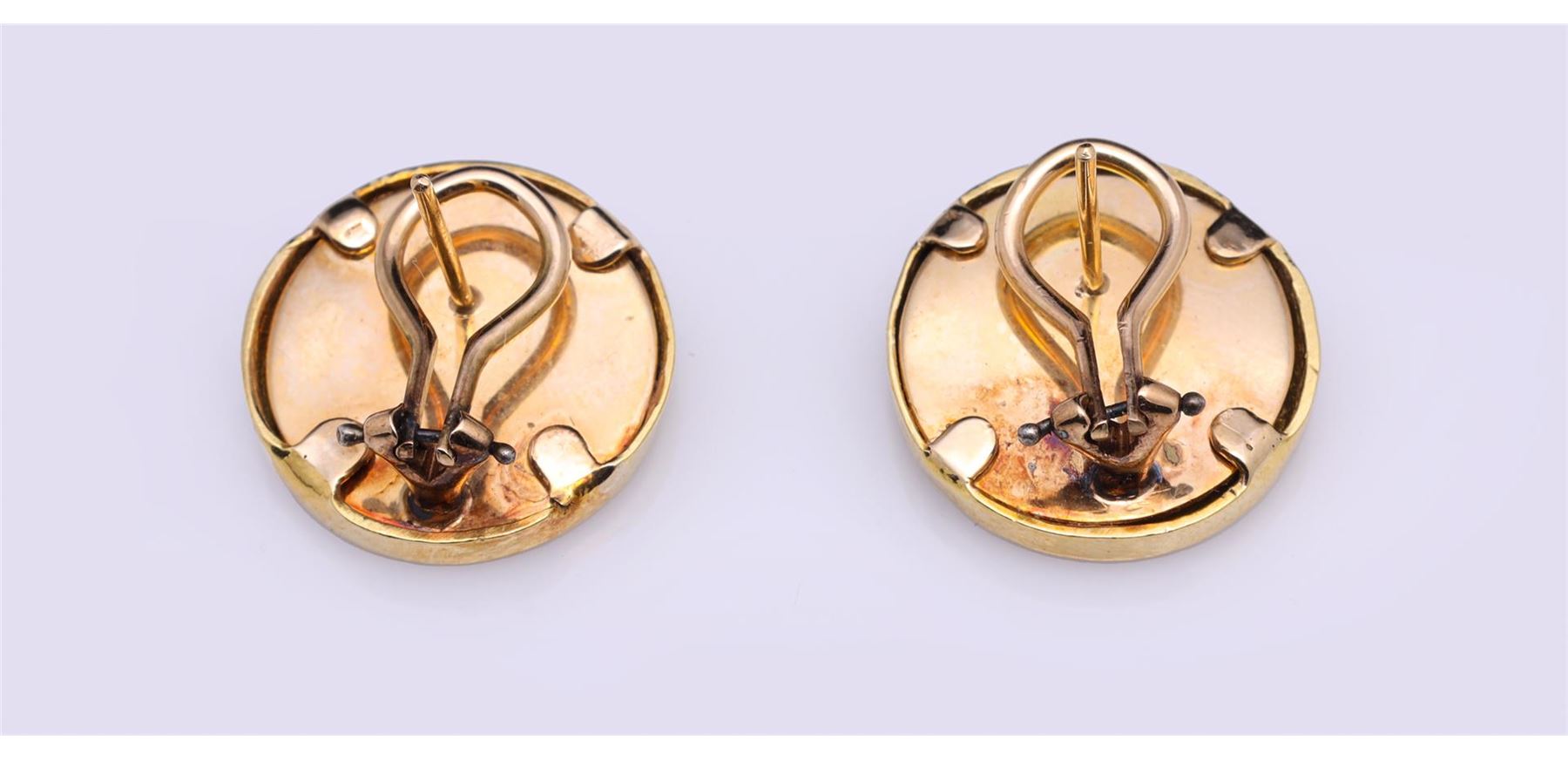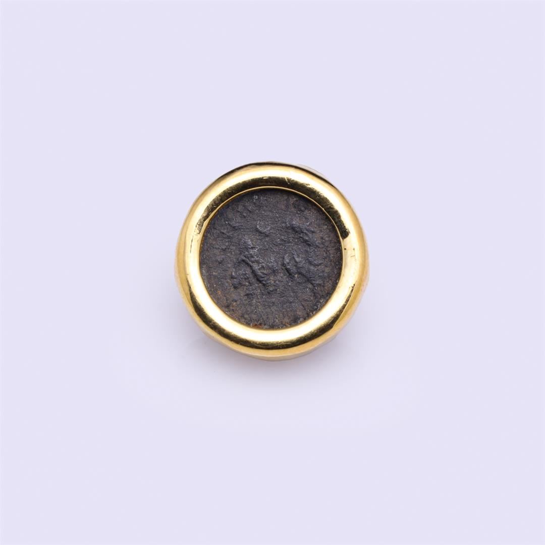 Two Imperial Roman coins mounted in 18k yellow gold as earrings; gross weight 14.6 g, each D 3/4" (approx.)