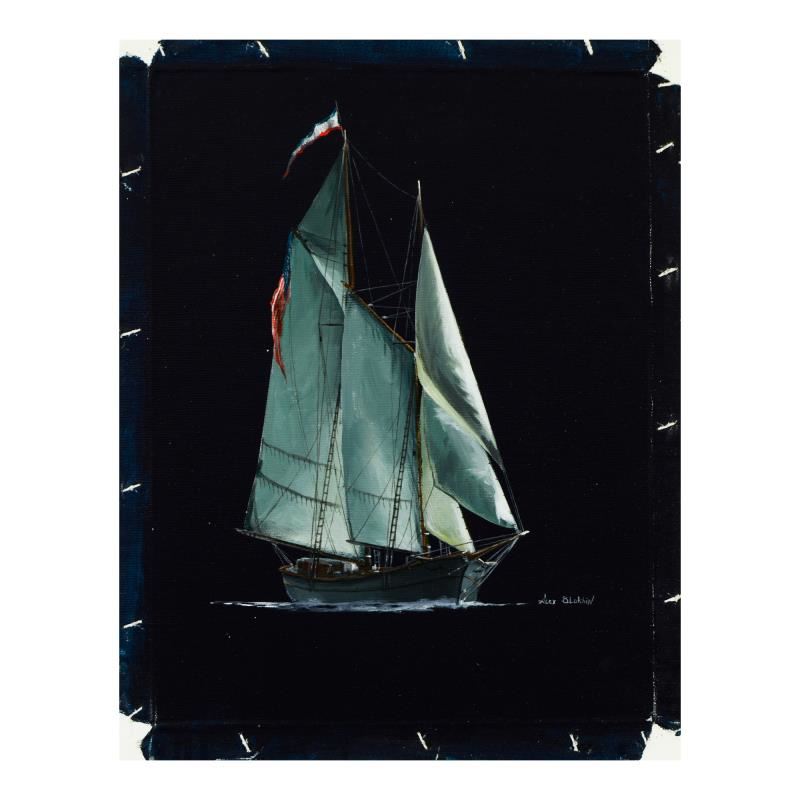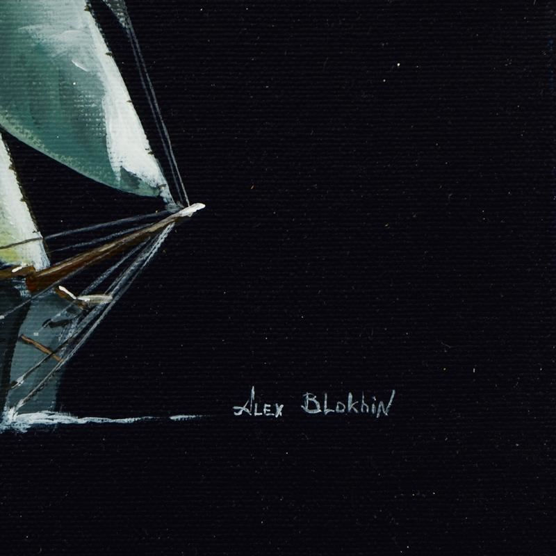 "Two Masted Schooner" is an original oil painting on canvas by Alex Blokhin, hand signed by the artist. Includes Letter of Authenticity. Measures approx. 14" x 18" (image).