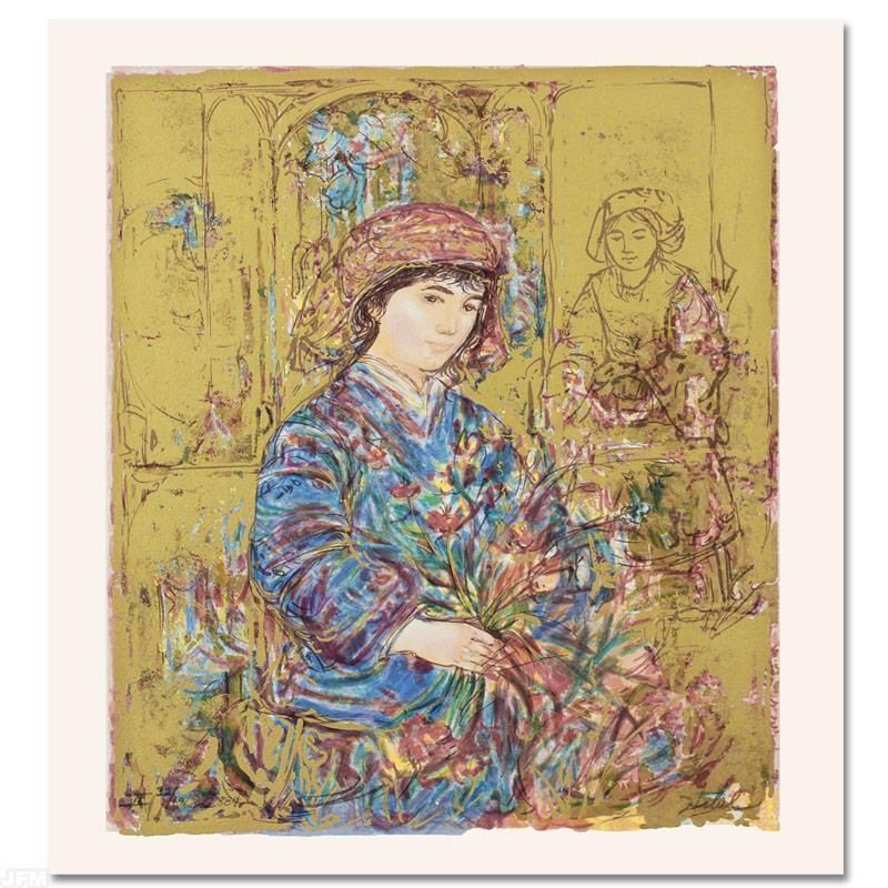 "Umbria's Garden" is a limited edition serigraph on paper, numbered and hand signed by Edna Hibel (1917-2014). Includes Certificate of Authenticity! Measures approx. 15" x 20" (with border), 12" x 15" (image).