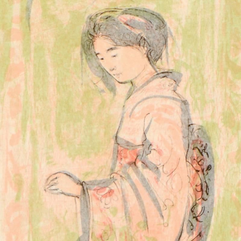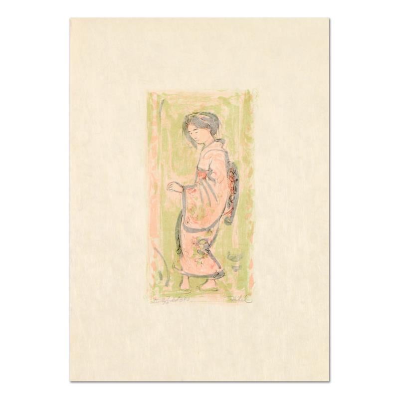 "Ume" is a limited edition lithograph on rice paper by Edna Hibel (1917-2014), numbered and hand signed by the artist. Includes Certificate of Authenticity. Measures approx. 12.5" x 17" (border), 5" x 10" (image).