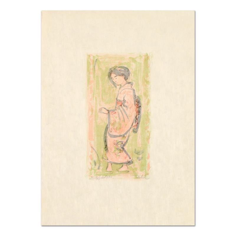 "Ume" is a limited edition lithograph on rice paper by Edna Hibel (1917-2014), numbered and hand signed by the artist. Includes Certificate of Authenticity. Measures approx. 12.5" x 17" (border), 5" x 10" (image).