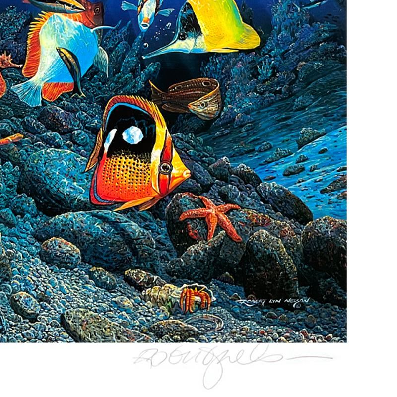 "Undersea Waltz" is a limited edition mixed media on paper by Robert Lyn Nelson, numbered and hand signed by the artist. Includes Letter of Authenticity. Measures approx. 15" x 27" (border), 12" x 24" (image). There may be minor imperfections on the paper but the piece is in overall good condition.