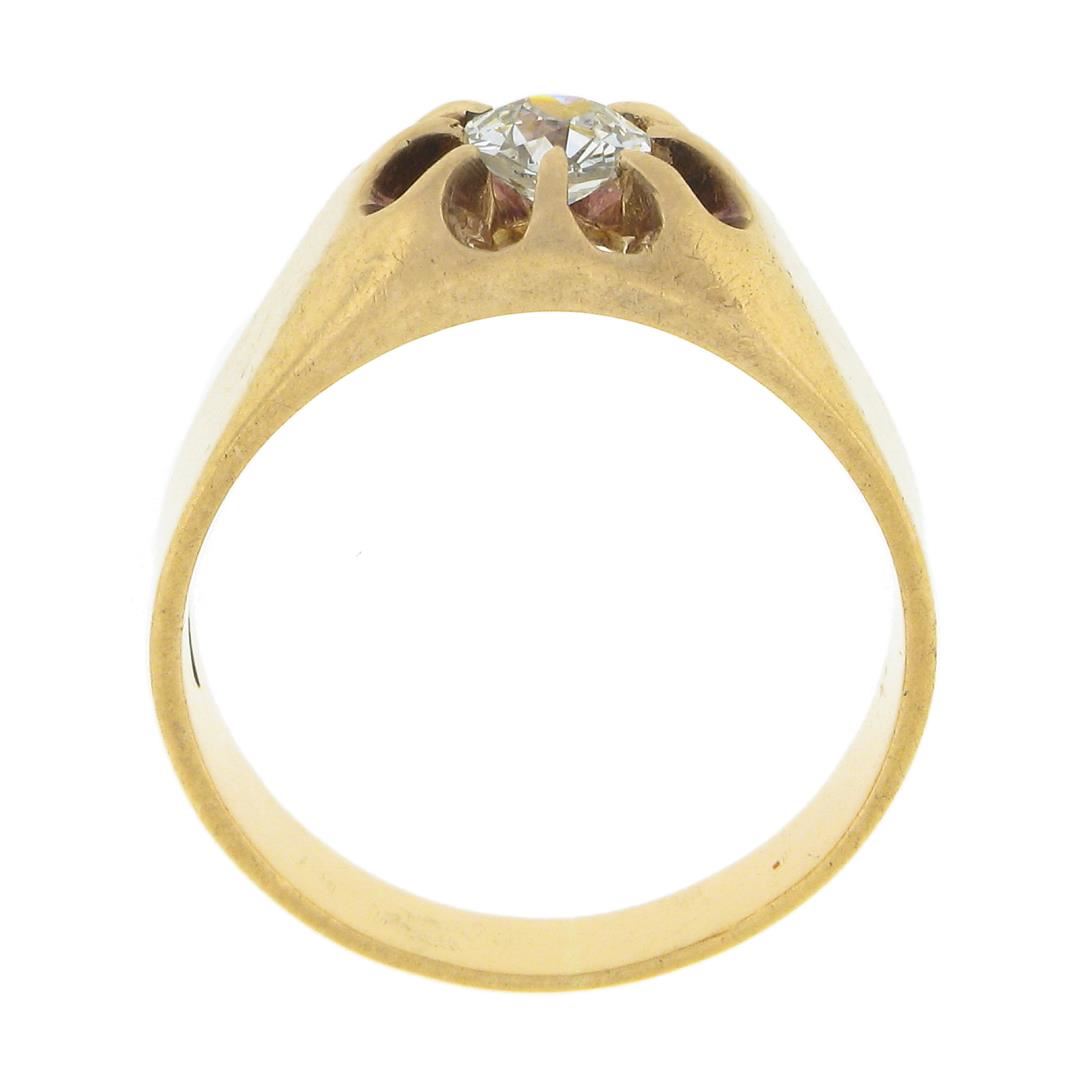 An antique solid 14k yellow gold ring, with 1 old european cut natural diamond (I - VS2 ; 0.43ct). The ring is size 8.0, weighs a total of 6.24 grams, and measures 8mm wide.