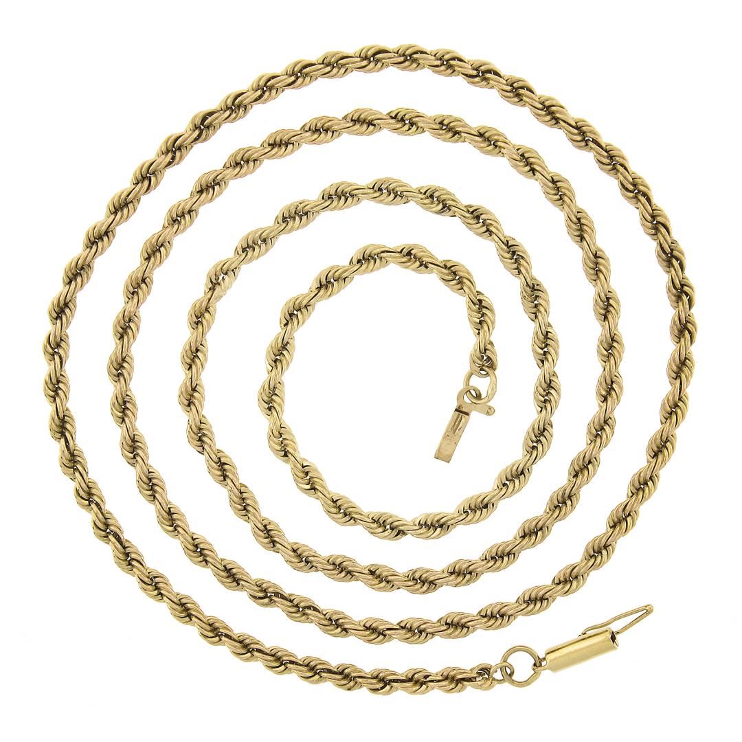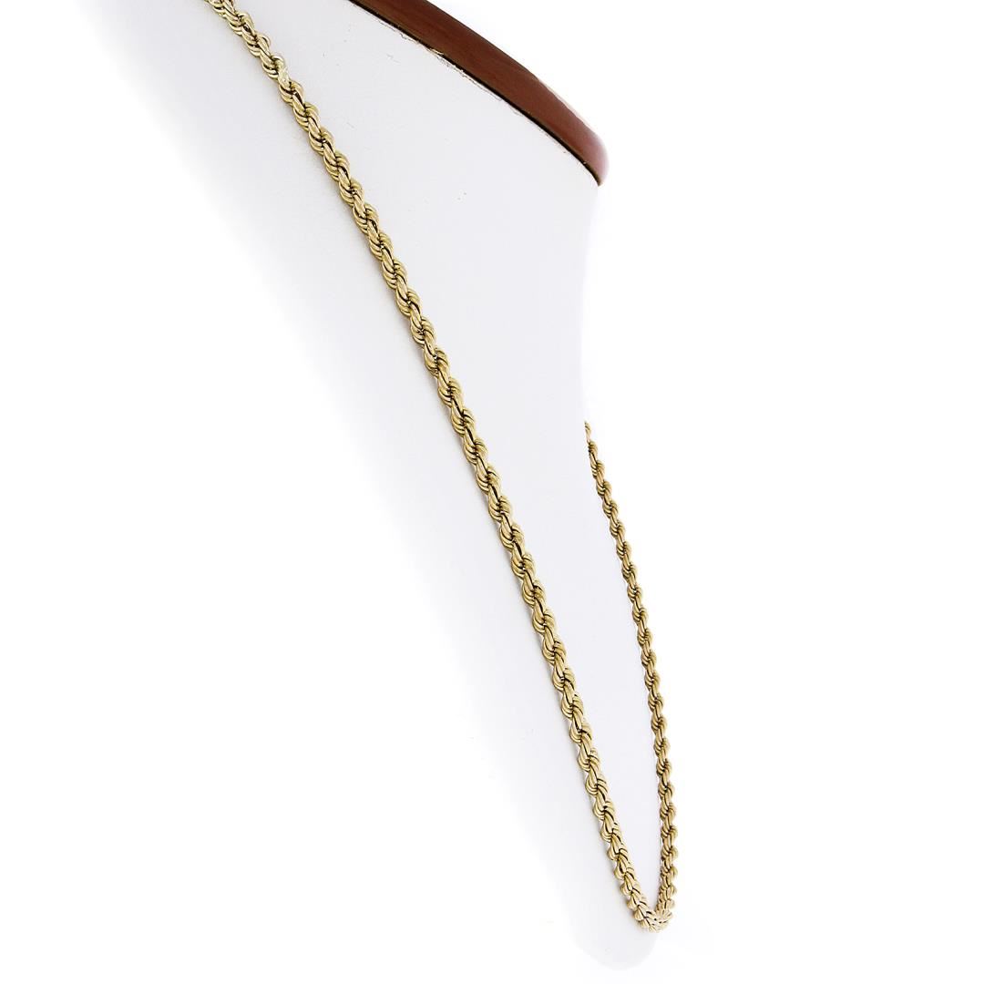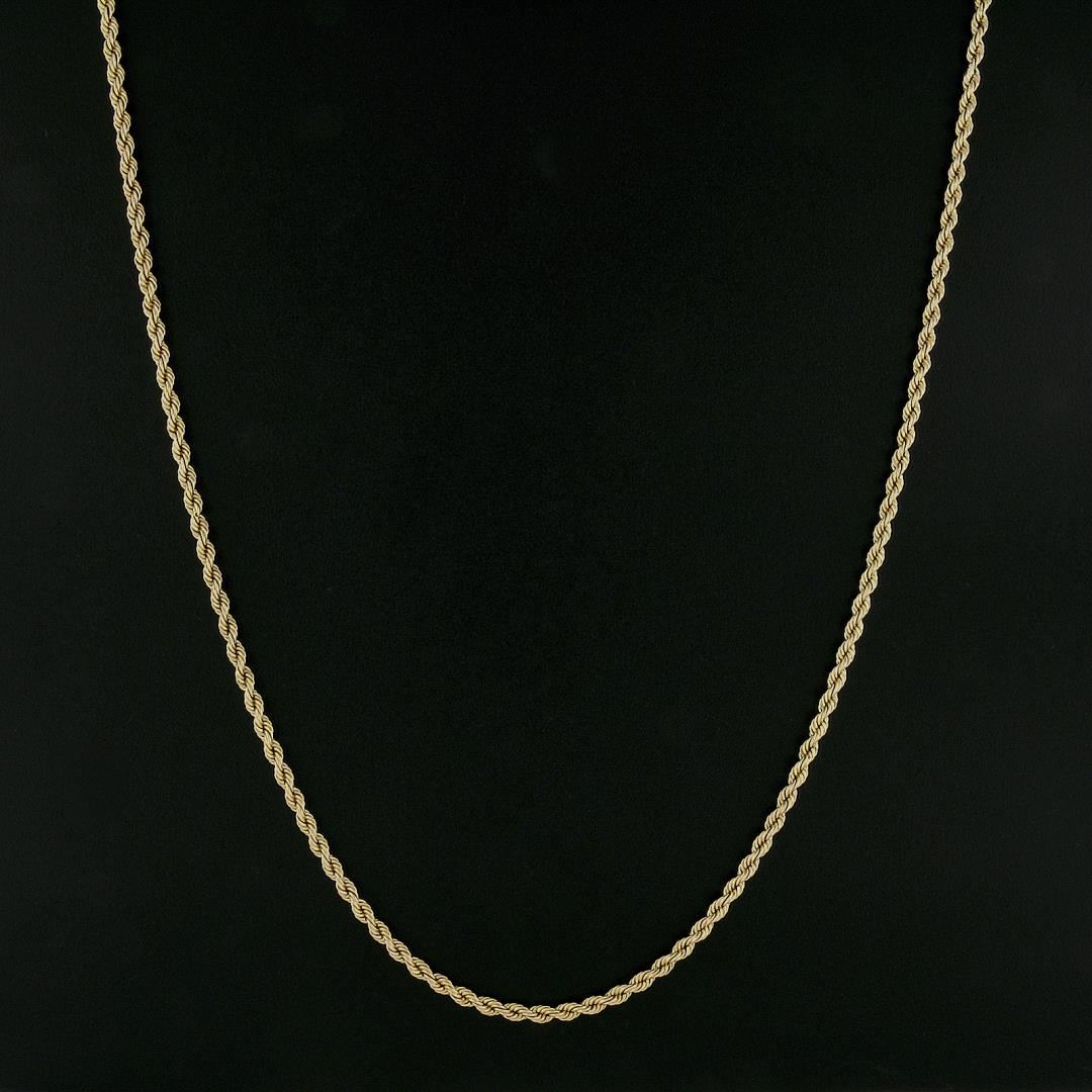 A solid 14k yellow gold rope link necklace. It weighs a total of 21.56 grams, measures 3.1mm wide, and measures 24.5 inches in length.