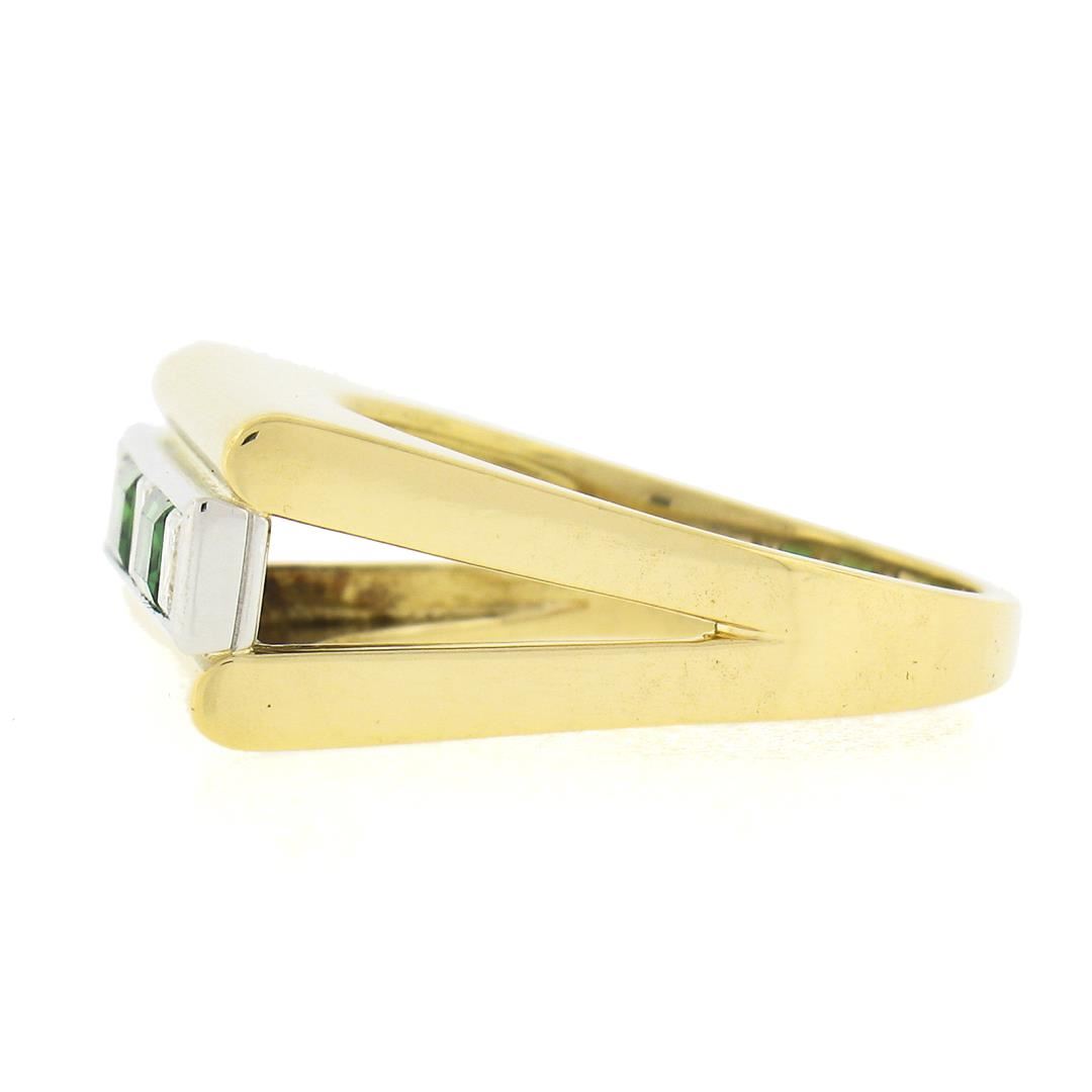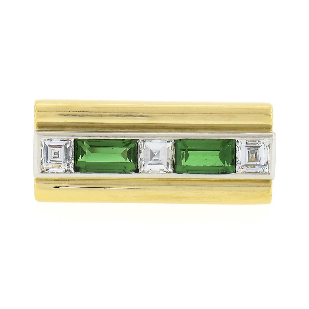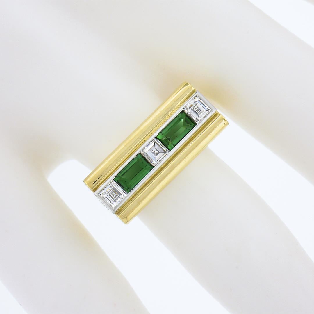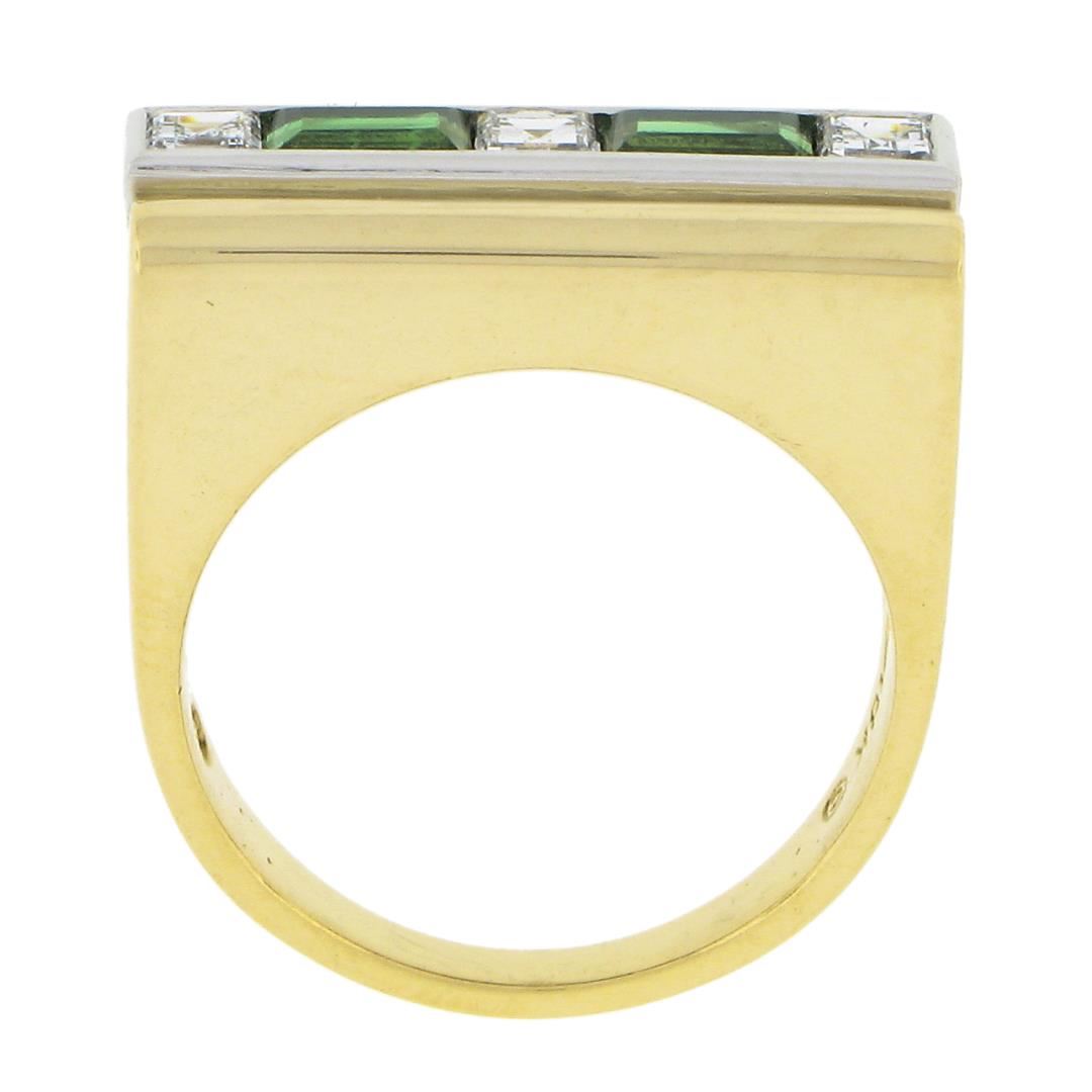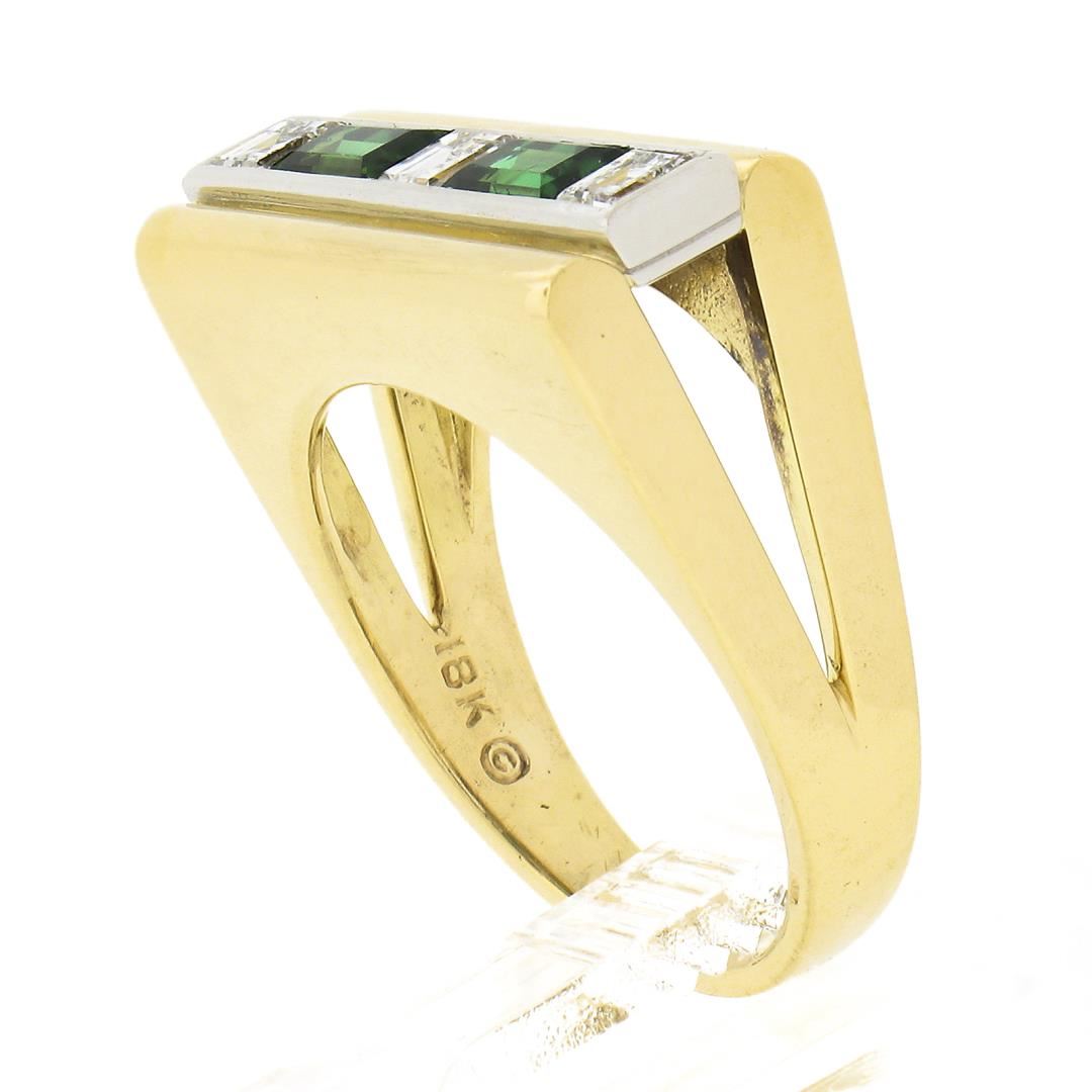 Unisex Vintage 18k Gold 1.10 ctw Baguette Tourmaline & Square Diamond Band Ring