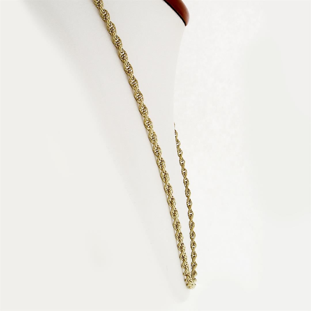 A vintage Esemco solid 14k yellow gold rope link chain necklace. It weighs a total of 13.0 grams, measures 3.15mm wide, and measures 27 inches in length.