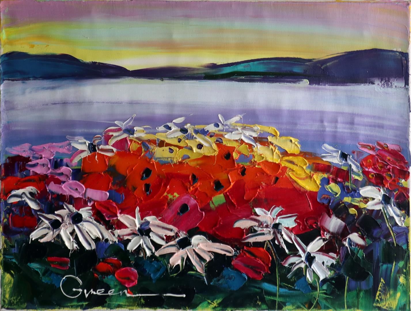 Untitled MG1 by Green, Maya. Original One-of-a-Kind Hand Signed Acrylic on Canvas. Dimensions: 11.5 x 21. Excellent Condition.