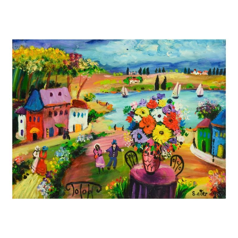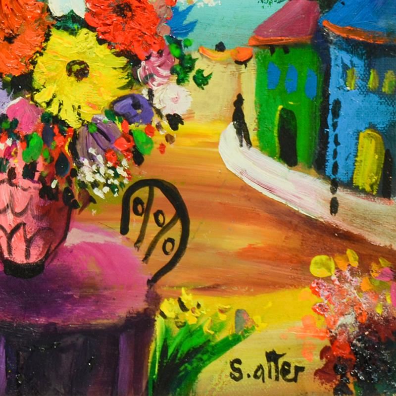 This is an original acrylic painting on canvas by Shlomo Alter, hand signed by the artist. Includes Letter of Authenticity. Measures approx. 16" x 12" (image).