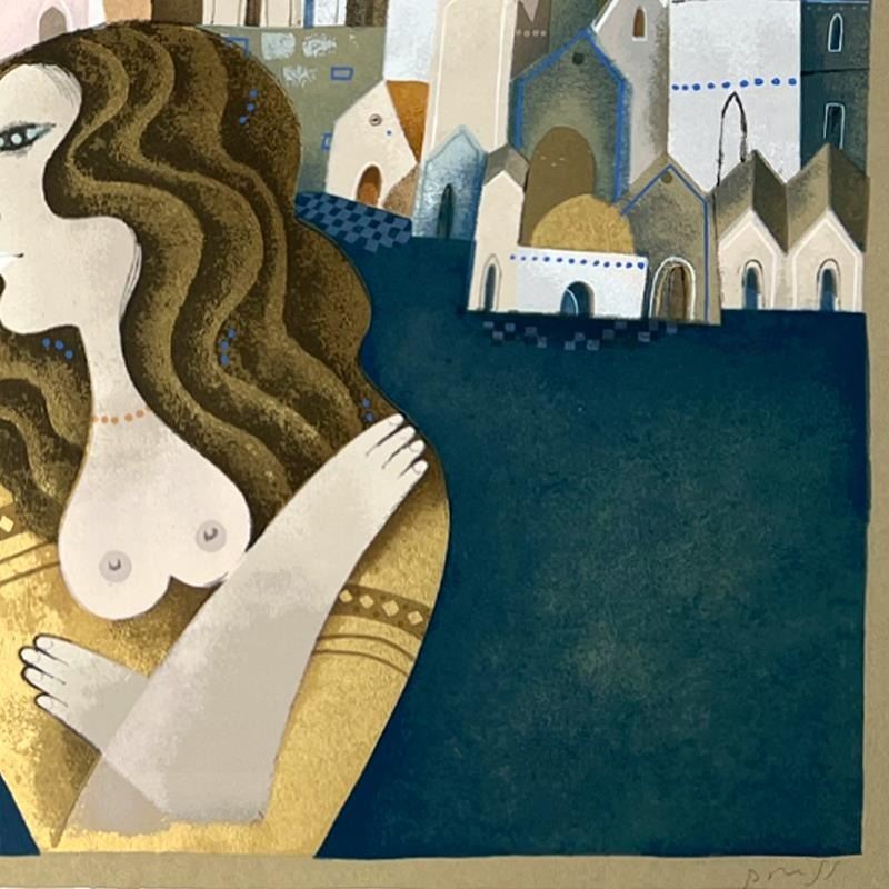 This is a limited edition serigraph on paper by Samy Briss. The piece comes hand signed by the artist, numbered, and with a letter of authenticity. Measures approximately 17" x 22".