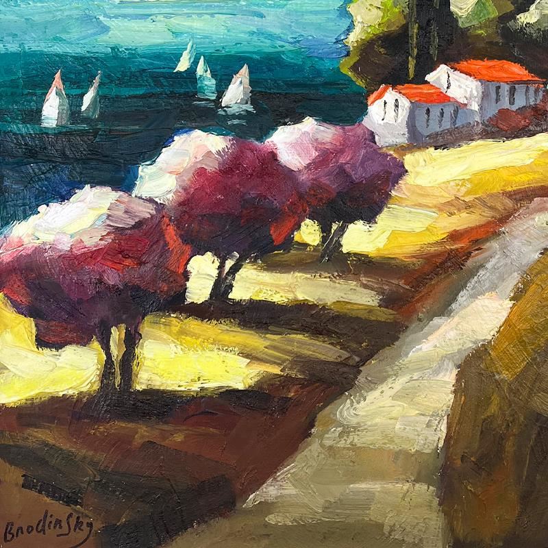 This is an original painting oil on canvas by Slava Brodinsky. Hand signed by the artist, this piece comes with a letter of authenticity. Measures approximately 24" x 20" (image).
