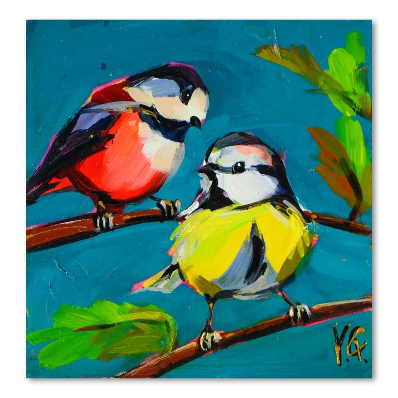 This is an original acrylic painting on board by Yasna Godovanic, hand signed by the artist. Includes Letter of Authenticity. Measures approx. 6" x 6.5" (image).