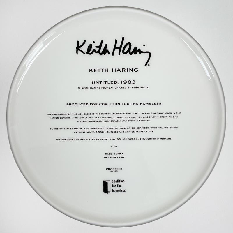 This is a limited edition fine bone china plate by Keith Haring (1958-1990). This plate is custom framed and floated on linen. Measures approx. 15.5 x 15.5 (frame), 10.5 (plate diameter).