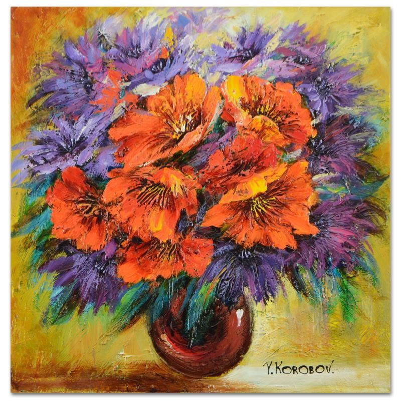 This is an original acrylic painting on stretched canvas by Yana Korobov, hand signed by the artist. Includes Letter of Authenticity. Measures approx. 24" x 24" (image).
