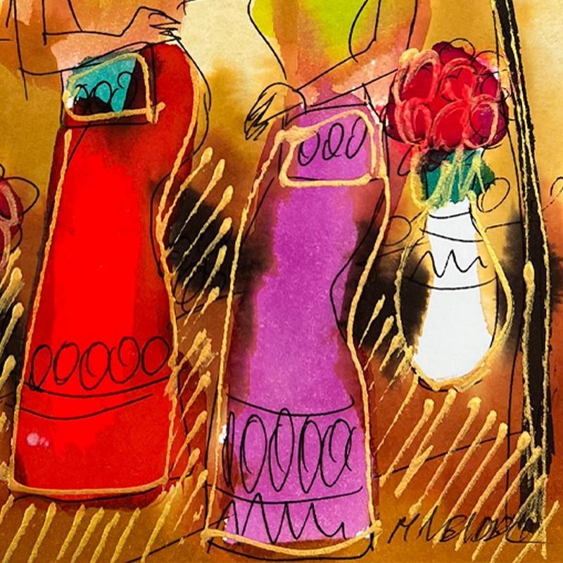 This is an original mixed media watercolor painting on paper by Moshe Leider. Hand signed by the artist, this piece comes custom framed and includes a Letter of Authenticity. Measures approximately 15" x 13.5" (frame), 8" x 6.5" (image).