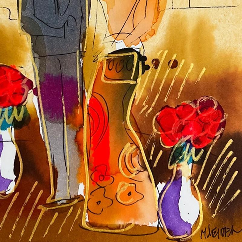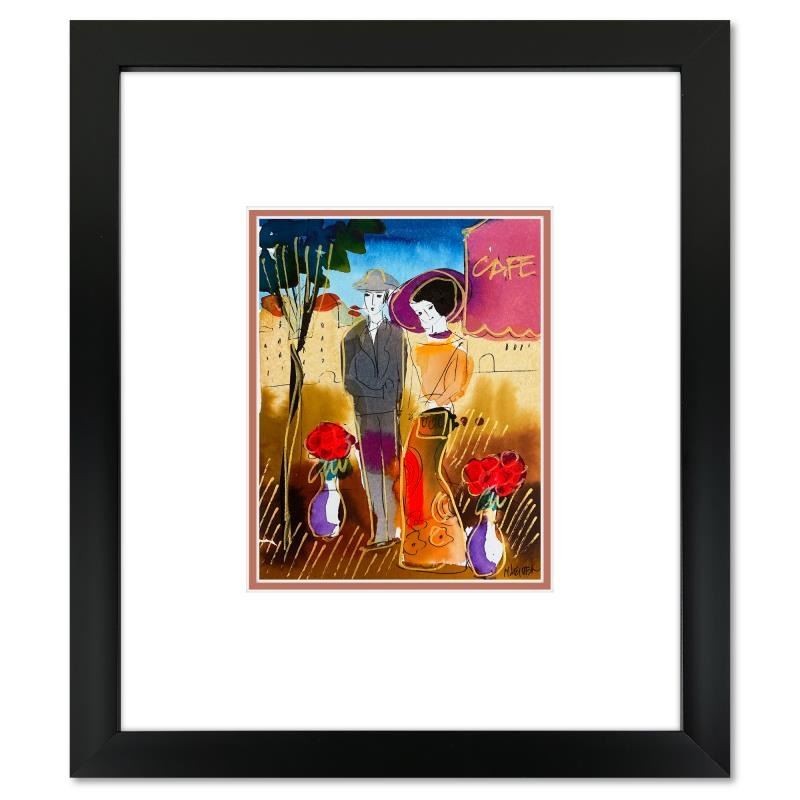 This is an original mixed media watercolor painting on paper by Moshe Leider. Hand signed by the artist, this piece comes custom framed and includes a Letter of Authenticity. Measures approximately 15" x 13.5" (frame), 8" x 6.5" (image).