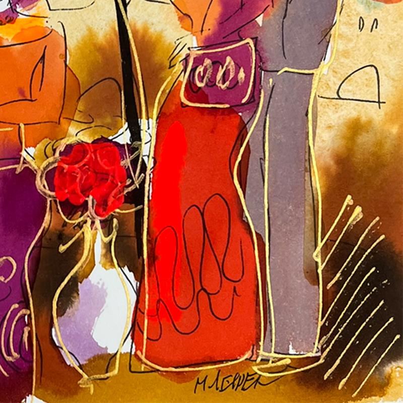 This is an original mixed media watercolor painting on paper by Moshe Leider. Hand signed by the artist, this piece comes custom framed and includes a Letter of Authenticity. Measures approximately 15" x 17" (frame), 8" x 10" (image).