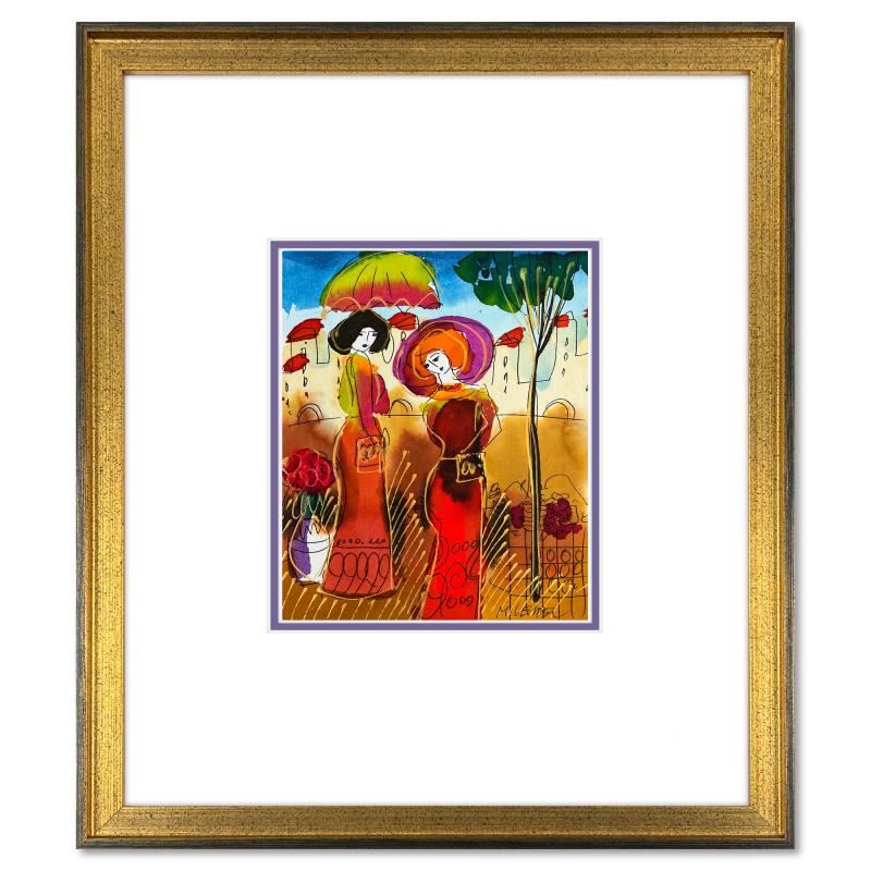 This is an original mixed media watercolor painting on paper by Moshe Leider. Hand signed by the artist, this piece comes custom framed and includes a Letter of Authenticity. Measures approximately 15" x 13.5" (frame), 8" x 6.5" (image).