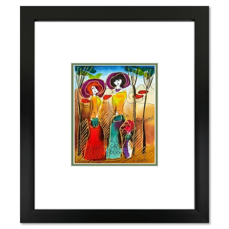 This is an original mixed media watercolor painting on paper by Moshe Leider. Hand signed by the artist, this piece comes custom framed and includes a Letter of Authenticity. Measures approximately 15" x 13.5" (frame), 8" x 6.5" (image).