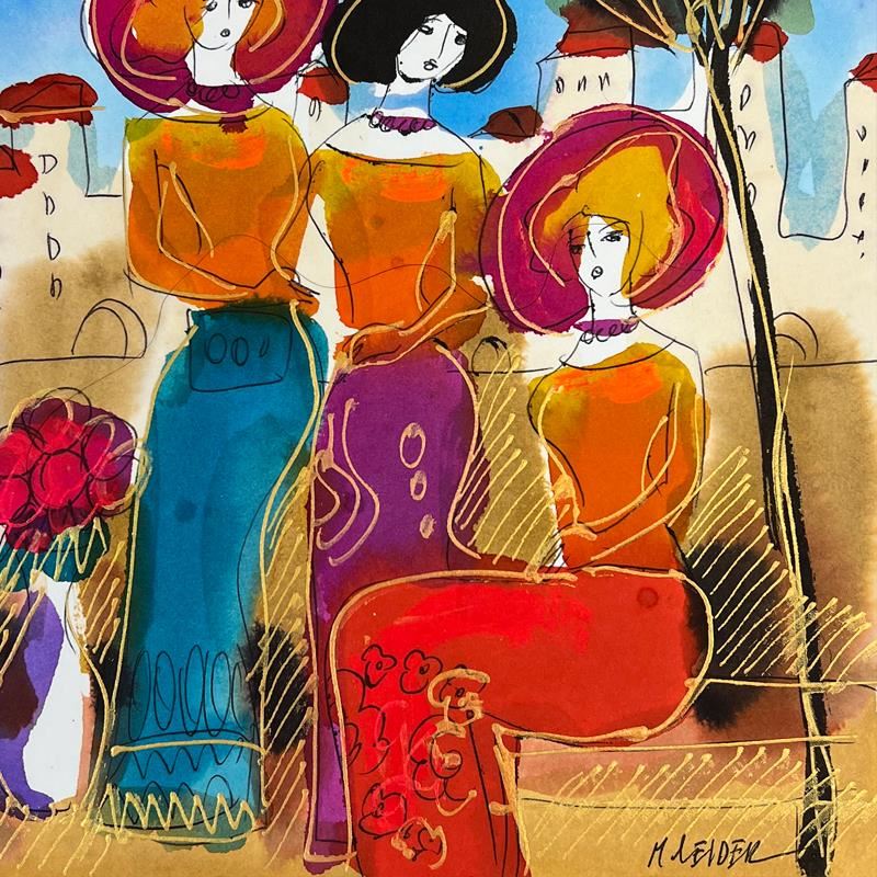 This is an original mixed media watercolor painting on paper by Moshe Leider. Hand signed by the artist, this piece comes custom framed and includes a Letter of Authenticity. Measures approximately 16" x 15" (frame), 9" x 8" (image).