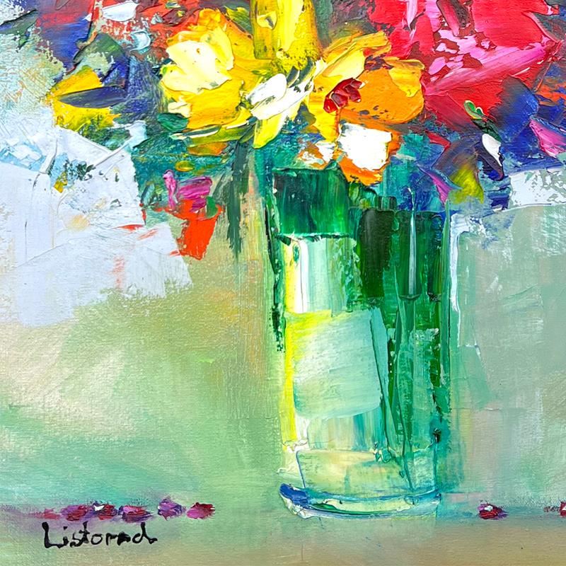 This is an untitled original painting, acrylic on canvas by Natalya Listopad. It is hand signed by the artist and comes with a letter of authenticity. Measures approximately 18" x 13" (image).