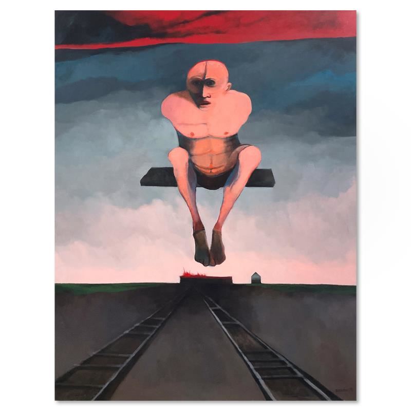 This is an original painting on stretched canvas by Milton Berwin (1925-2023), dated 1995 and hand signed by the artist. Includes Letter of Authenticity. Measures approx. 62" x 48" (image).