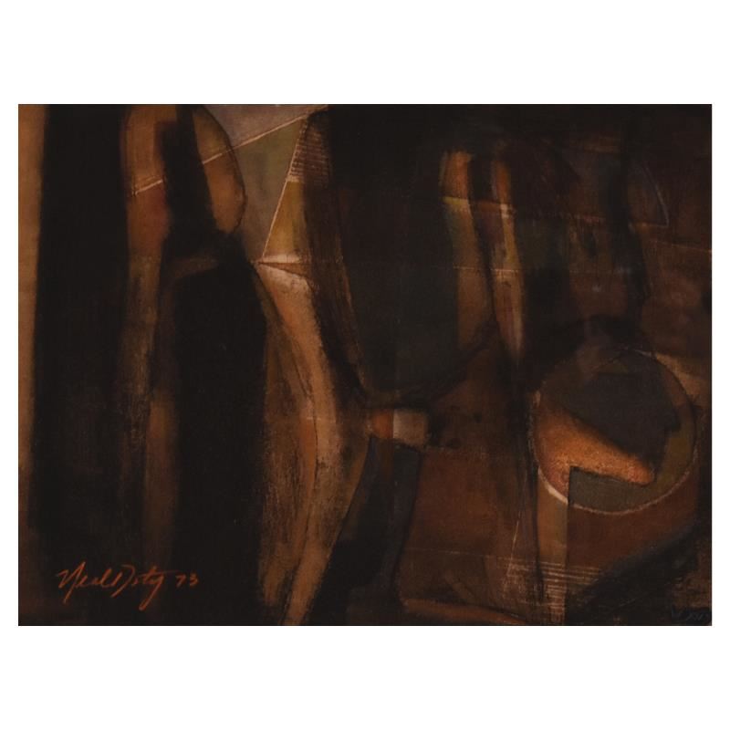 This is an original painting on paper by Neal Doty (1941-2016), dated 1973 and hand signed by the artist. This piece comes custom framed. Includes Letter of Authenticity. Measures approx. 24.5" x 20.5" (frame), 16" x 12" (image).