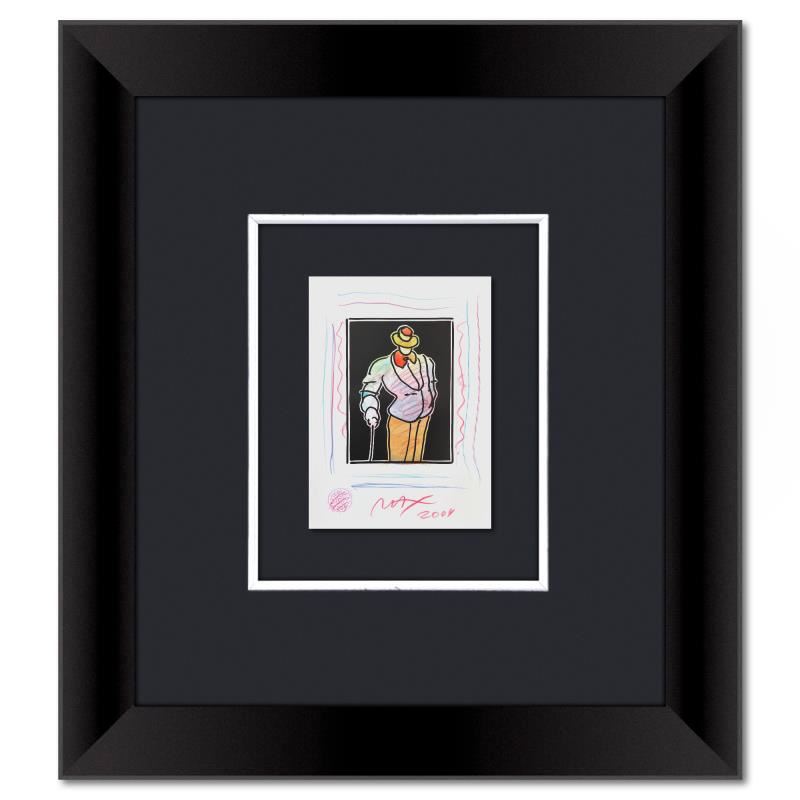 This is a one-of-a-kind mixed media on paper, hand signed by Peter Max. The piece comes custom framed with a backside cutout to display Peter Max Studio registration number 371436 certifying authenticity. Measures approximately 22.5" x 20" (frame), 8.5" x 6" (image).