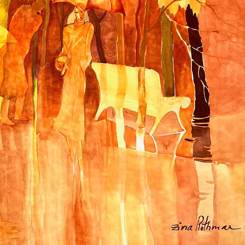 This is an untitled original painting on paper by Zina Roitman. The piece is hand signed and comes with a letter of authenticity. Measures approximately 19.5" x 26.5".