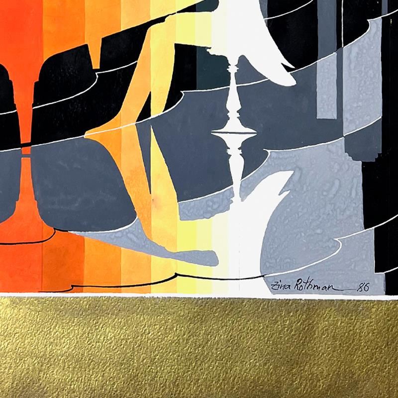 This is an untitled original painting on paper by Zina Roitman. The piece is hand signed and comes with a letter of authenticity. Measures approximately 30 x 22.