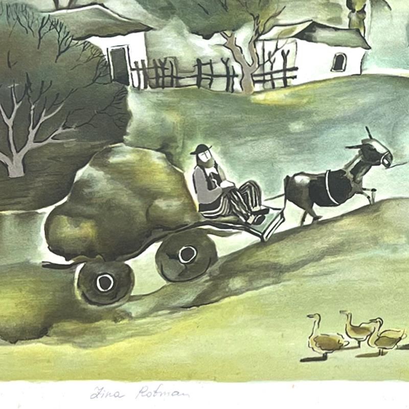 This is a limited edition serigraph on paper by Zina Roitman. The piece comes hand signed by the artist, numbered, and with a letter of authenticity. Measures approximately 12" x 18".