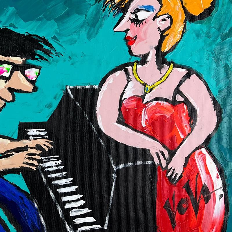 This is an untitled original painting, acrylic on canvas, by Vova. Hand Signed by the artist, the piece comes with a letter of authenticity. Measures approximately 20" x 23".