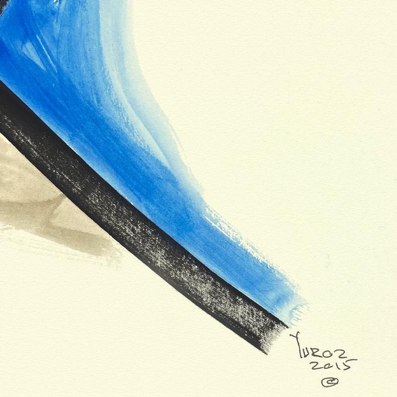 This is an original painting on paper by Yuroz, hand signed by the artist. This piece comes custom framed on linen. Includes Letter of Authenticity. Measures approx. 29" x 27" (frame), 19.5" x 17.5" (image).