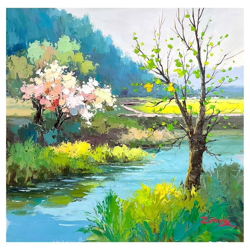 This is an original acrylic painting on canvas by Zahra, hand signed by the artist. Includes Letter of Authenticity. Measures approx. 24" x 24" (image).