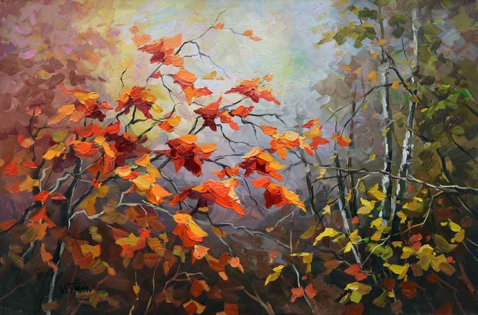 Artist: Vitman Alexey - Title: Untitled - Medium: Original Acrylic on Canvas - Signature: This one-of-a-kind work is hand-signed by the artist at the bottom of the image - Image Size: Approximately 24 inches x 36 inches - Unframed on Unstretched Canvas - Biography: Vitman Alexey was born in 1972 in Kiev, Ukraine. He immigrated to Israel in 1996 with his family. - He is now living in the suburbs of Tel Aviv and working as a professional artist and a graphic designer. The subject of most of his paintings is the nature from his homeland Ukraine.