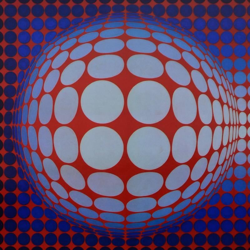 "VP Host" is a heliogravure print on paper by Victor Vasarely (1908-1997). This piece is titled inverso. Measures approx. 16.5" x 31.5" (image).