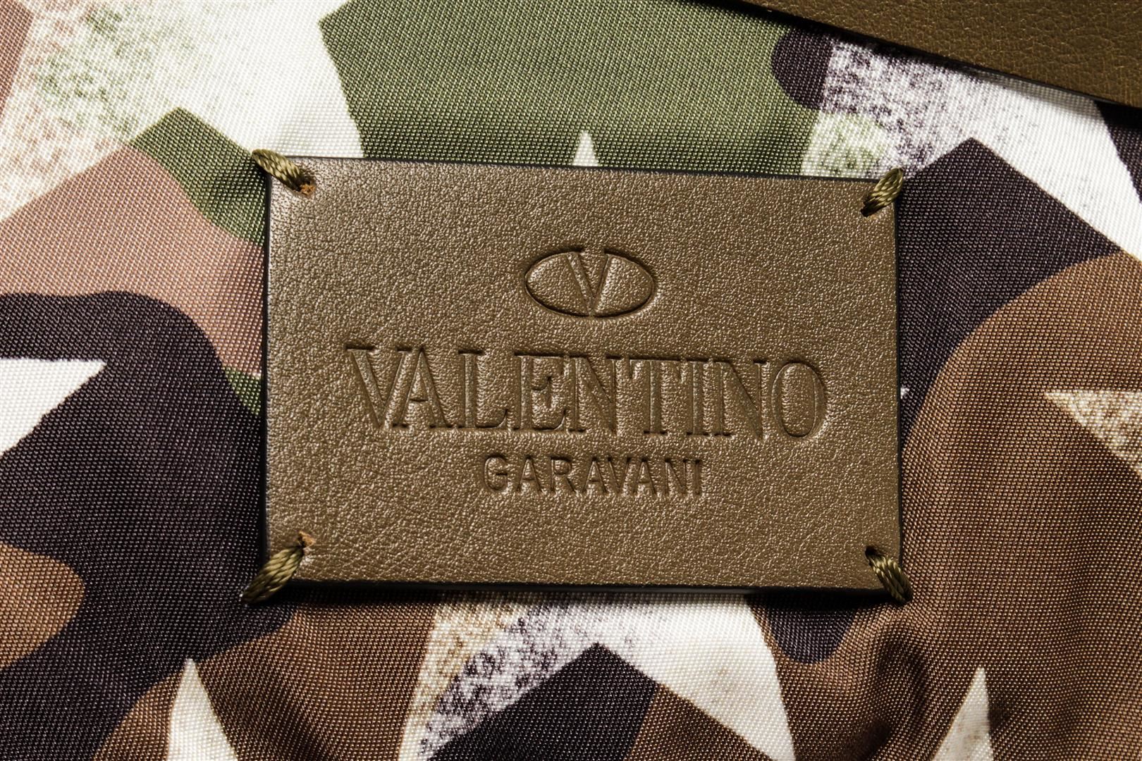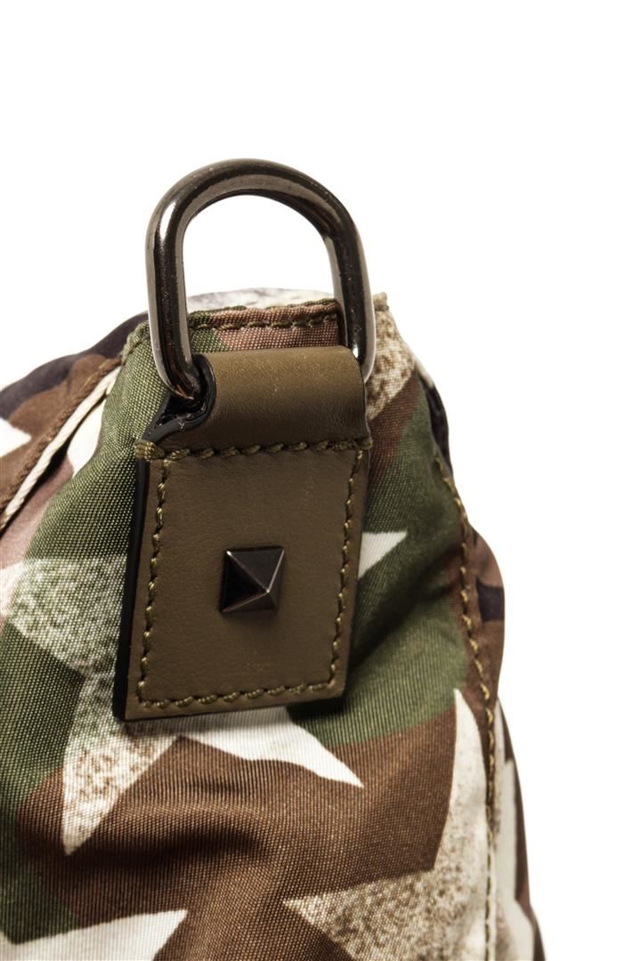 One Valentino Camouflage Camustars Messenger Bag. Item is sold AS-IS. All available information is listed in the description and shown in the photo. Valentino Camouflage Camustars Messenger Bag with shoulder strap, stars, nylon lining, interior zipper pocket, two slip pockets, snap closure.