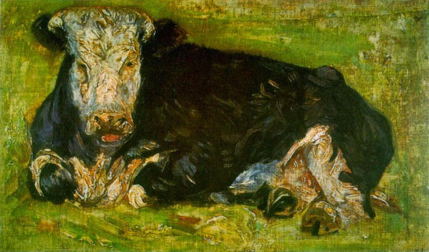Artist: Vincent Van Gogh - Title: Lying Cow - Medium: Fine Art Reproduction Giclee on Archival Canvas - Image Size: Approximately 19.25 inches x 32 inches - Unframed on Unstretched Canvas - Biography: Vincent van Gogh (born March 30, 1853, Zundert, Neth.--died July 29, 1890, Auvers-sur-Oise, near Paris, France), - Van Gogh was a Dutch painter, generally considered the greatest after Rembrandt, and one of the greatest of the Post-Impressionists. The striking color, emphatic brushwork, and contoured forms of his work powerfully influenced the current of Expressionism in modern art. Van Gogh's art became astoundingly popular after his death, especially in the late 20th century, when his work sold for record-breaking sums at auctions around the world and was featured in blockbuster touring exhibitions. In part because of his extensive published letters, van Gogh has also been mythologized in the popular imagination as the quintessential tortured artist.
