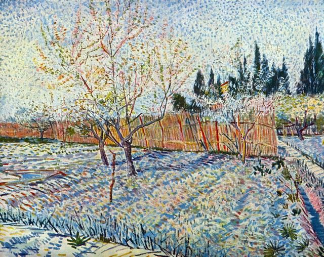 Artist: Vincent Van Gogh - Title: Orchard with Cypress - Medium: Fine Art Reproduction Giclee on Archival Canvas - Image Size: Approximately 15.75 inches x 20 inches - Unframed on Unstretched Canvas - Biography: Vincent van Gogh (born March 30, 1853, Zundert, Neth.--died July 29, 1890, Auvers-sur-Oise, near Paris, France), - Van Gogh was a Dutch painter, generally considered the greatest after Rembrandt, and one of the greatest of the Post-Impressionists. The striking color, emphatic brushwork, and contoured forms of his work powerfully influenced the current of Expressionism in modern art. Van Gogh's art became astoundingly popular after his death, especially in the late 20th century, when his work sold for record-breaking sums at auctions around the world and was featured in blockbuster touring exhibitions. In part because of his extensive published letters, van Gogh has also been mythologized in the popular imagination as the quintessential tortured artist.