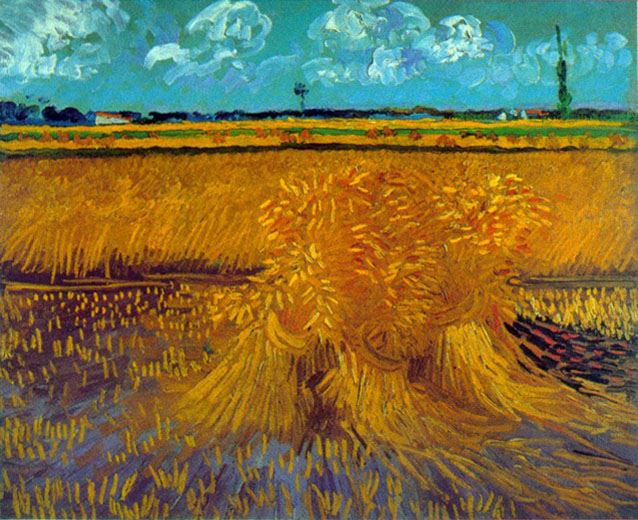 Artist: Vincent Van Gogh - Title: Sheaves - Medium: Fine Art Reproduction Giclee on Archival Canvas - Image Size: Approximately 26 inches x 32 inches - Unframed on Unstretched Canvas - Biography: Vincent van Gogh (born March 30, 1853, Zundert, Neth.--died July 29, 1890, Auvers-sur-Oise, near Paris, France), - Van Gogh was a Dutch painter, generally considered the greatest after Rembrandt, and one of the greatest of the Post-Impressionists. The striking color, emphatic brushwork, and contoured forms of his work powerfully influenced the current of Expressionism in modern art. Van Gogh's art became astoundingly popular after his death, especially in the late 20th century, when his work sold for record-breaking sums at auctions around the world and was featured in blockbuster touring exhibitions. In part because of his extensive published letters, van Gogh has also been mythologized in the popular imagination as the quintessential tortured artist.