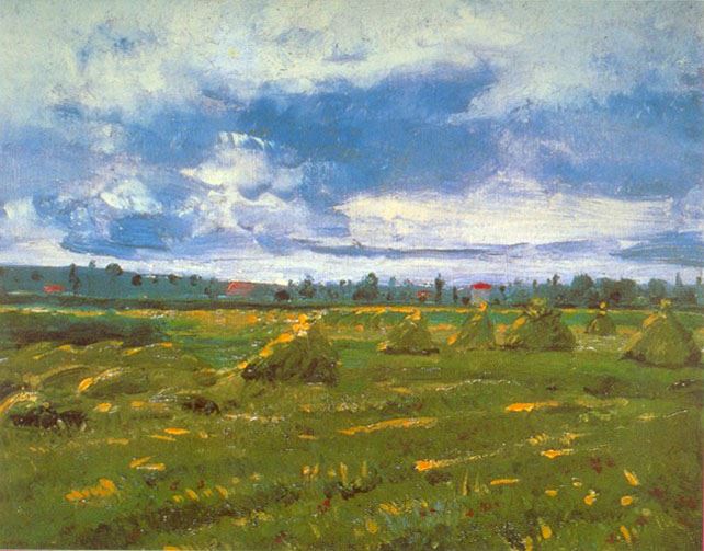 Artist: Vincent Van Gogh - Title: Stacks - Medium: Fine Art Reproduction Giclee on Archival Canvas - Image Size: Approximately 25.25 inches x 32 inches - Unframed on Unstretched Canvas - Biography: Vincent van Gogh (born March 30, 1853, Zundert, Neth.--died July 29, 1890, Auvers-sur-Oise, near Paris, France), - Van Gogh was a Dutch painter, generally considered the greatest after Rembrandt, and one of the greatest of the Post-Impressionists. The striking color, emphatic brushwork, and contoured forms of his work powerfully influenced the current of Expressionism in modern art. Van Gogh's art became astoundingly popular after his death, especially in the late 20th century, when his work sold for record-breaking sums at auctions around the world and was featured in blockbuster touring exhibitions. In part because of his extensive published letters, van Gogh has also been mythologized in the popular imagination as the quintessential tortured artist.