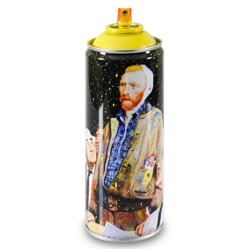 "Van Gogh (Yellow)" is a numbered limited edition hand painted spray can by Mr Brainwash. This piece bears the plate signature of the artist and comes from his 2020 Classic Spray Can Collection. Measures approximately 2.5" x 7.5".