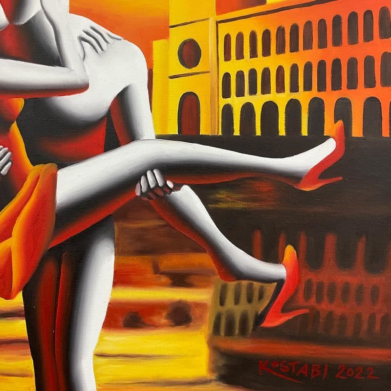 "Venetian Fantasy" is an original oil painting on canvas by Mark Kostabi, hand signed by the artist. This piece comes framed. Includes Letter of Authenticity. Measures approx. 25.5" x 25.5" (frame), 21" x 21" (image).