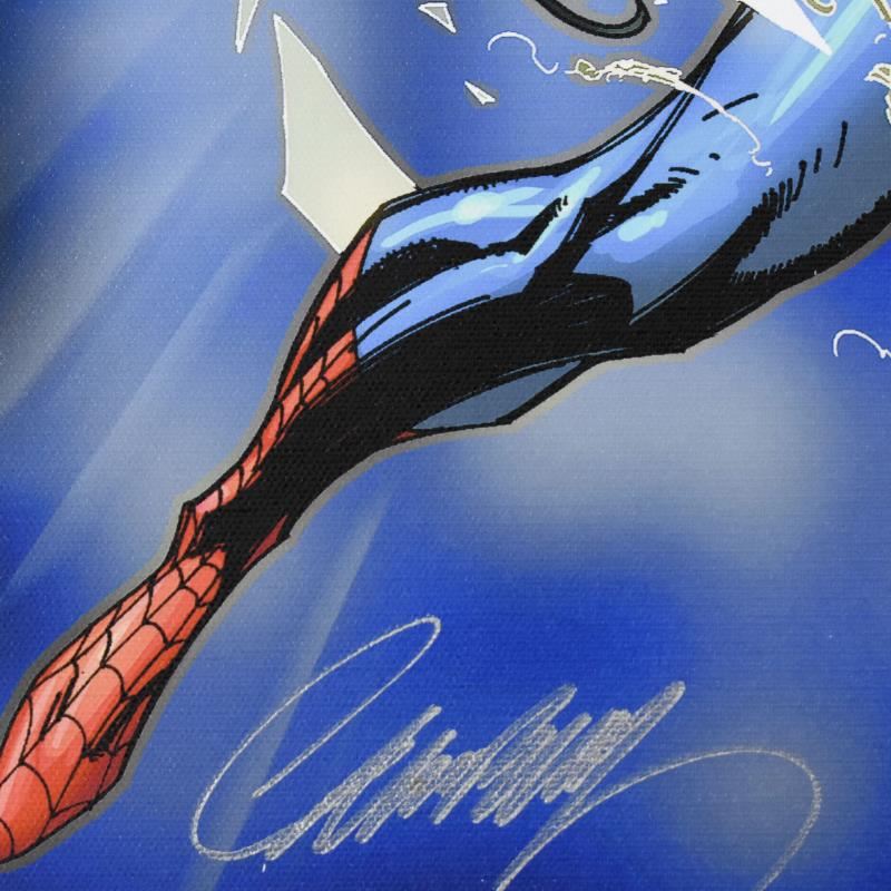 A piece of comic book history, this limited edition print, drawn by J. Scott Campbell, depicts famous characters from the classic Spider-Man series. Though he became famous for drawing for Wildstorm Comics, J. Scott Campbell now works on a Spider-Man series with Jeff Loeb. "Vengeance of the Moon Knight #9" is a limited edition giclee on canvas by J. Scott Campbell presented by Marvel Comics, numbered and hand signed by the artist. Includes Certificate of Authenticity. Measures approx. 15" x 22" (image).