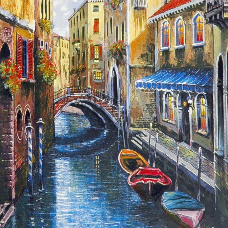 "Venice" is a limited edition lithograph on paper by Anatoly Metlan, numbered and hand signed by the artist. Includes Certificate of Authenticity. Measures approx. 9" x 12" (image).