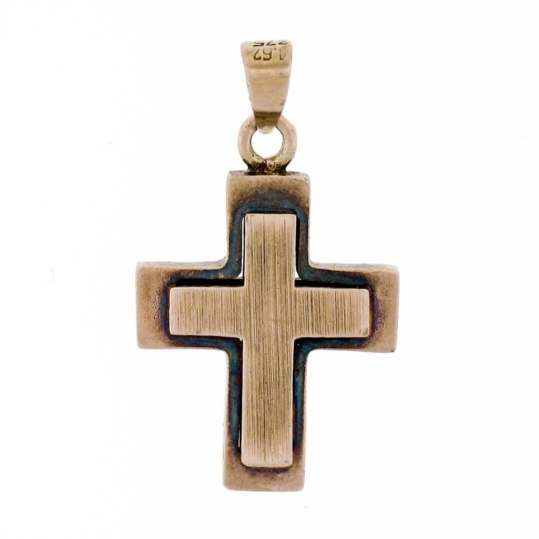 Victorian 8k Rose Gold Reversible Brushed Finish Cross Pendant