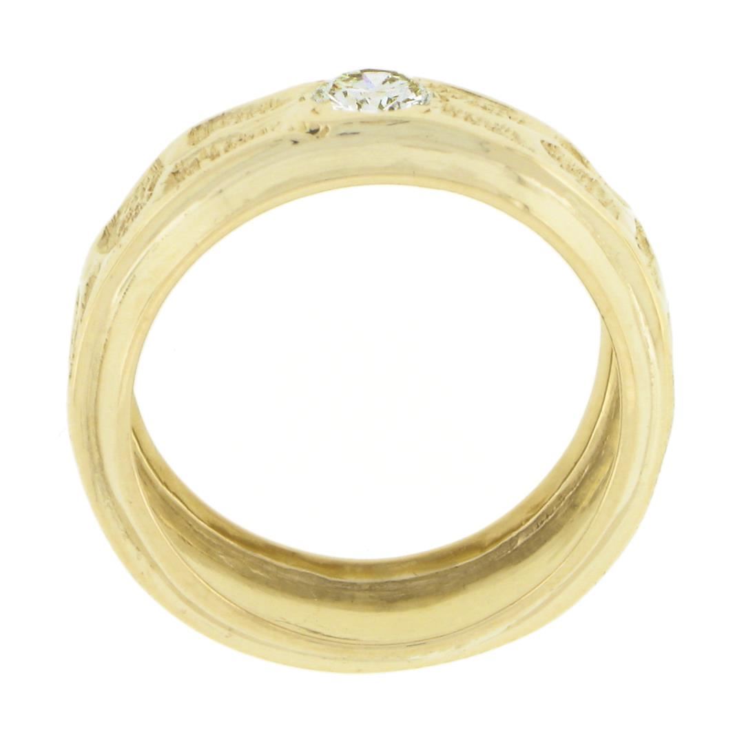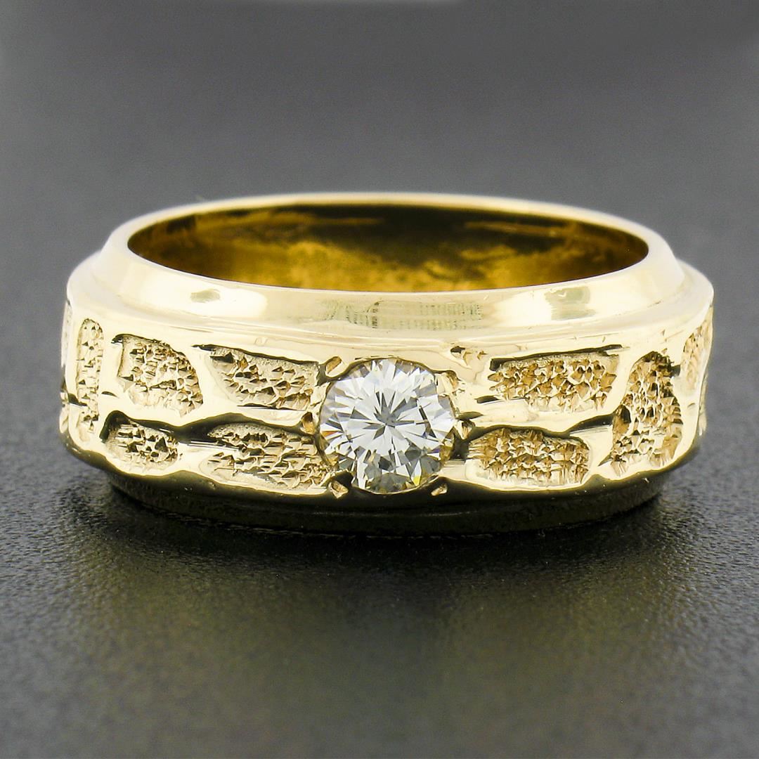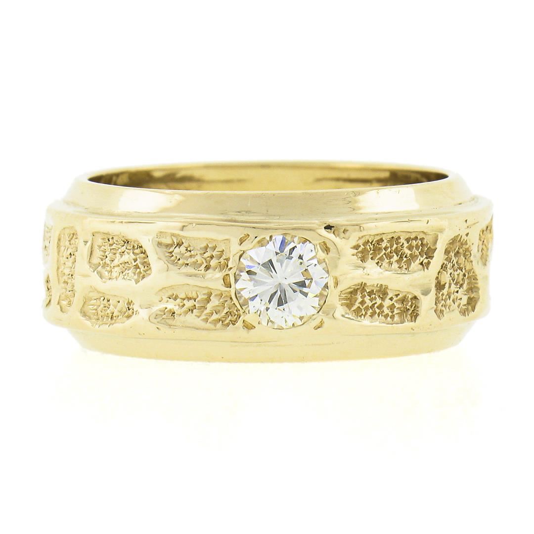 A vintage solid 14k yellow gold band ring, with 1 round cut natural diamond (J - SI1 ; 0.28ct). The ring is size 6.0, weighs a total of 6.23 grams, and measures 7.7mm wide.