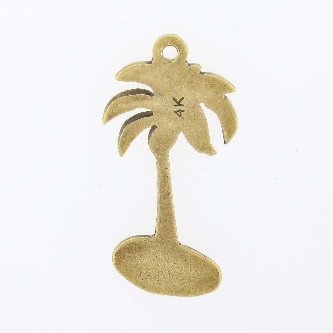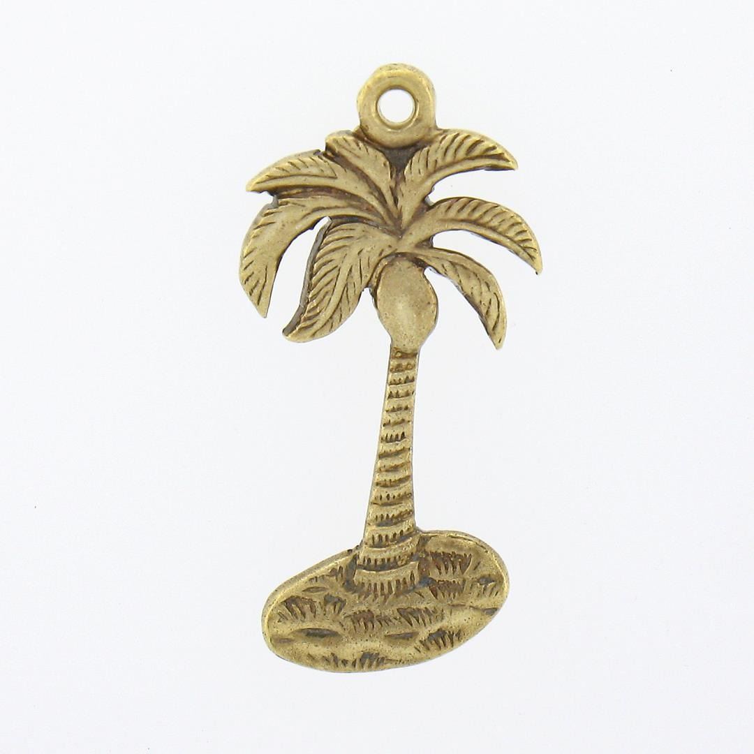 A vintage solid 14k yellow gold palm tree charm pendant. The pendant weighs a total of 0.80 grams, measures 19x9.3mm, and needs a jumpring bail.